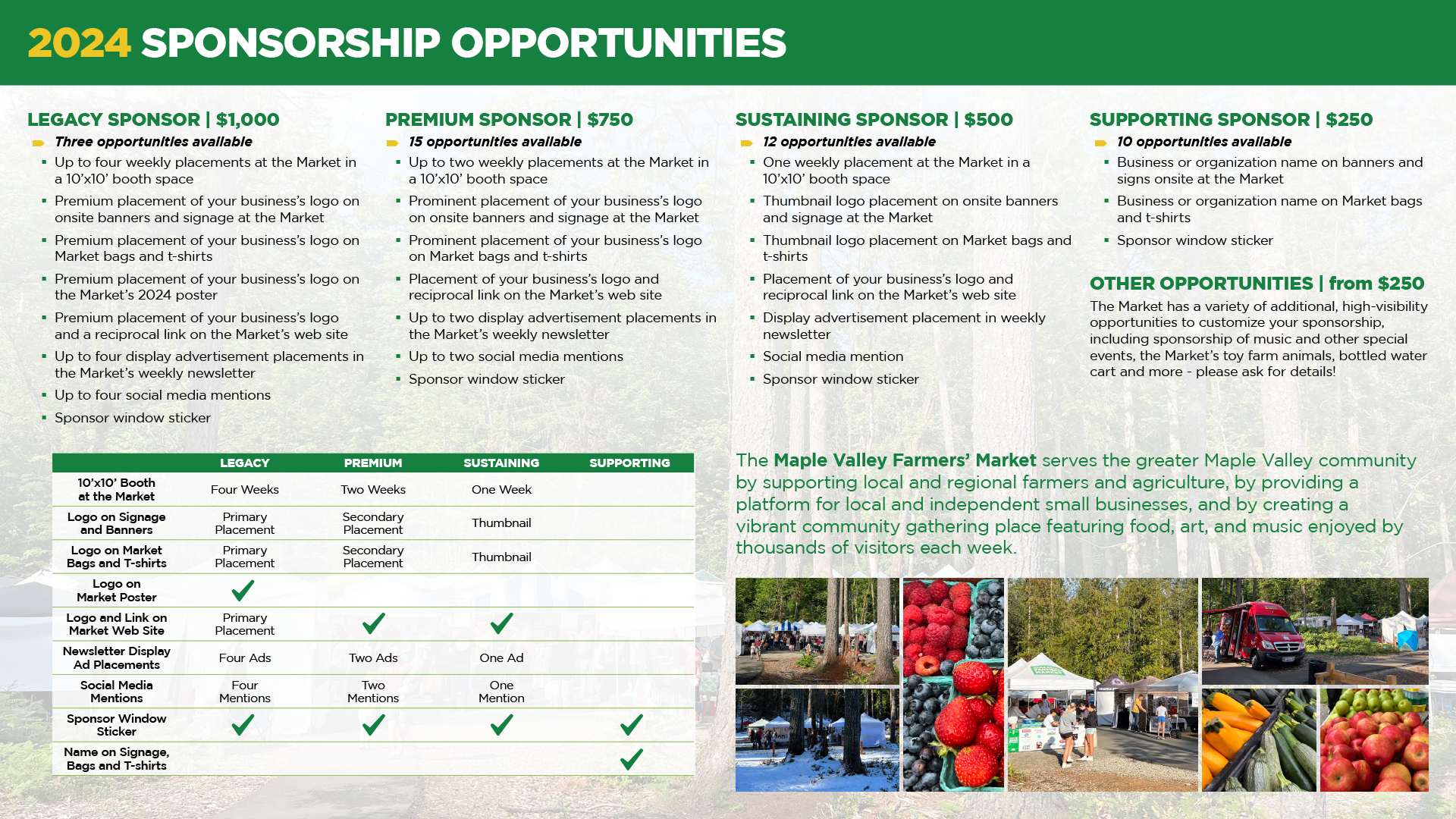 An interactive PDF promoting sponsorship opportunities for a community farmers' market.